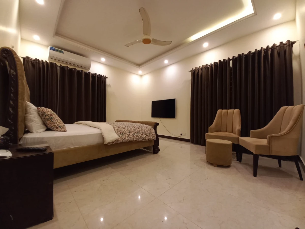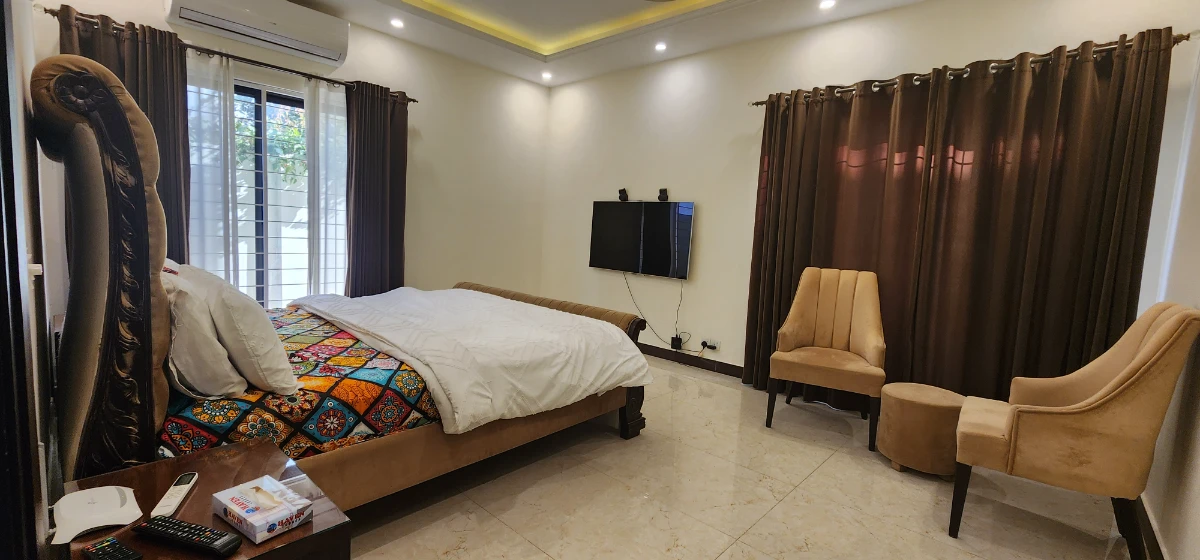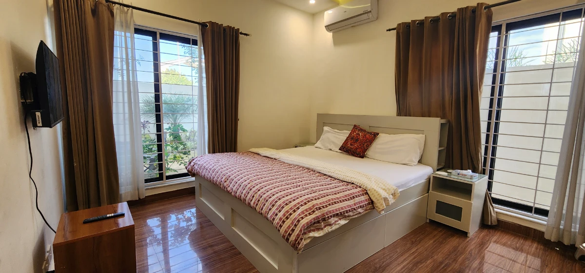 Total price will be calculated after selecting datesWelcome to Haven Lodge Islamabad, a spacious and fully furnished 3 bedroom ground floor portion of a one kanal home designed for comfortable family stays, corporate guests and group travelers. Located in a peaceful secure gated community in Islamabad, this private portion offers safety, privacy and convenient access to major areas of the city. The ground floor has a completely separate private entrance, while the garage parking is shared with space available for two cars. Haven Lodge provides th...